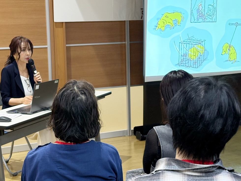 講座では、保護犬保護猫と呼ばれる保護動物の背景や動物虐待の話し、海外の取り組み、そして動物と暮らすということはどのような責任があるのか。また、野生動物と自然環境のことなど多岐に渡りお話ししてきました。