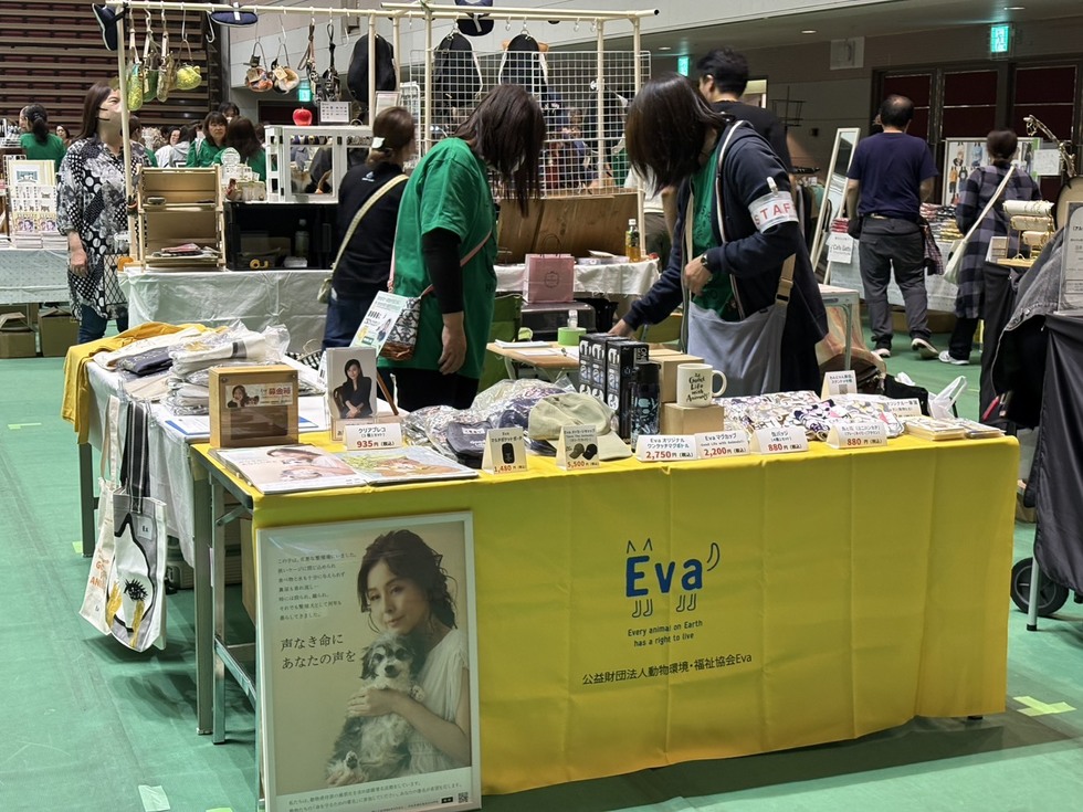 ステージ前のマルシェでは、魅力的な猫雑貨や美味しそうなスイーツのお店が立ち並び、多くの方がお買い物をされていました。Evaも出店させていただきました!